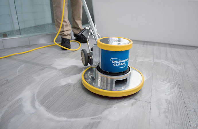 • High-Pressure Scrubbing: Using powerful scrubbing machines, we deep clean the tile surface and grout without damaging the finish.